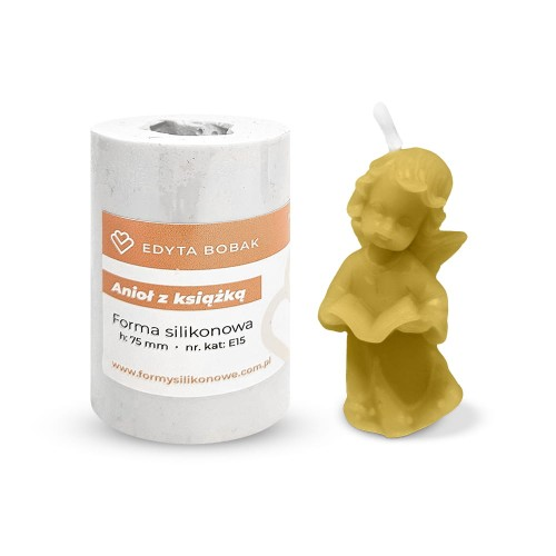 Forma silikonowa do wyrobu świec z silikonowej żywicy odlewniczej BLUESIL RTV . Niezwykle elastyczna i wytrzymała na uszkodzenia mechaniczne typu rozdarcia. Forma nie jest przeznaczona do użytku spożywczego. "Aniołek z książką" Wysokość figurki 7,5 cm