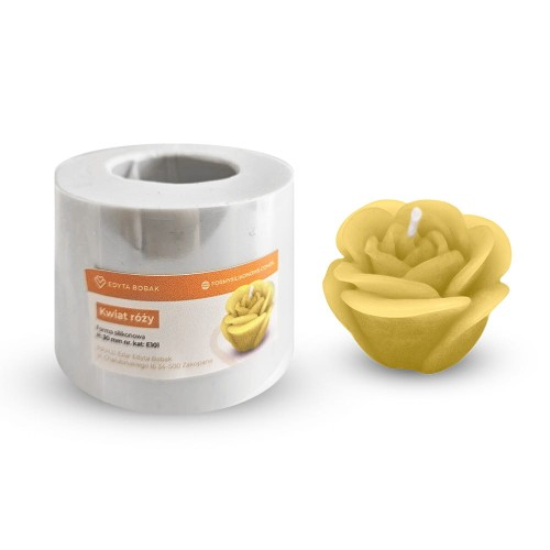 Forma silikonowa do wyrobu świec z silikonowej żywicy odlewniczej BLUESIL RTV . Niezwykle elastyczna i wytrzymała na uszkodzenia mechaniczne typu rozdarcia. Forma nie jest przeznaczona do użytku spożywczego. "Kwiat róży" Wysokość figurki 3 cm