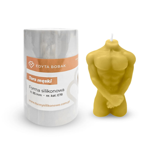 Forma silikonowa do wyrobu świec z silikonowej żywicy odlewniczej BLUESIL RTV . Niezwykle elastyczna i wytrzymała na uszkodzenia mechaniczne typu rozdarcia. Forma nie jest przeznaczona do użytku spożywczego. "Tors męski" Wysokość figurki 8,5 cm
