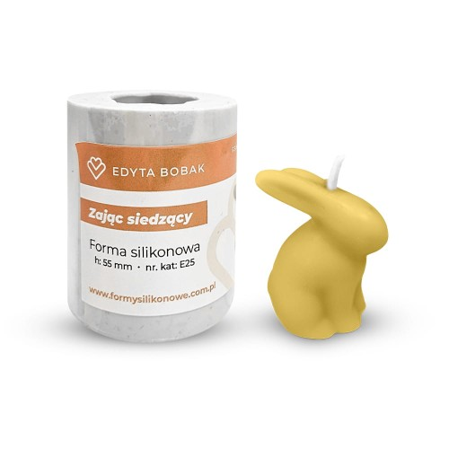 Forma silikonowa do wyrobu świec z silikonowej żywicy odlewniczej BLUESIL RTV . Niezwykle elastyczna i wytrzymała na uszkodzenia mechaniczne typu rozdarcia. Forma nie jest przeznaczona do użytku spożywczego. "Zając siedzący" Wysokość figurki 5,5 cm